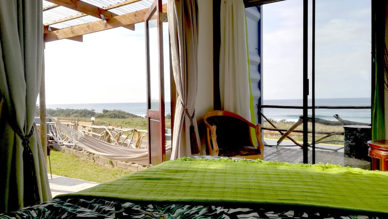 Außergewöhnliche Unterkünfte in Südafrika – Dieses vom Container inspirierte Ferienhaus für Selbstversorger liegt direkt gegenüber dem Strand. Zwei Fenstertüren führen auf die Terrasse, wo die Gäste in der Hängematte entspannen, Delfine und Wale beobachten oder den Sonnenuntergang am Feuerplatz genießen können. Das Haus liegt nicht nur in Strandnähe, sondern es gibt auch Angel- und Surf-Hotspots und Felsenpools für die Kleinen in der Nähe.